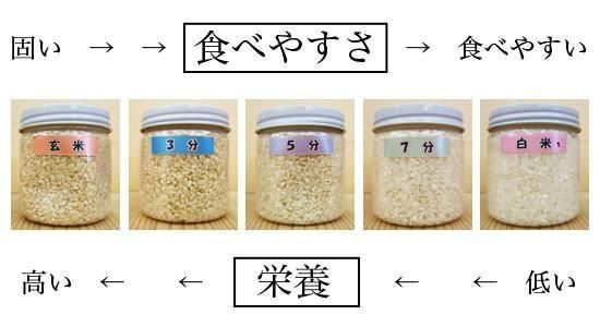3分づきは約3%、5分づきは約5%、7分づきは約7%重量が減ります。